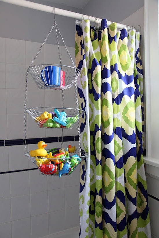 Tudom, szinte elkerülhetetlen, hogy az ember ne üljön rá egy gumikacsára, vagy más játékra a fürdőkádban, ha szökőévente egyszer megenged magának egy relaxáló esti merülést. Nos, az ilyen fürdőszobai balesetek megelőzésére, és nyilván a rend érdekében hasznos lehet ez a kis tároló, ami egy virágakasztóból lett kialakítva. Újrahasznosítás rulez!
