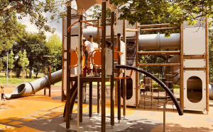Egyedi tervezésű új eszközökkel, Kőbánya hagyományait idéző két új játszótér várja mostantól a gyerekeket a kerület egyik legkedveltebb helyszínén, az Óhegy parkban.