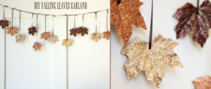 Csillogó falevelek – igazi vagy műanyag falevelek, ragasztó, csillámpor, barna díszszalag, spárga vagy vékonyka drót a felfüggesztéshez. Leírás (angolul): houseofjadeinteriorsblog.com