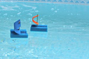 De tényleg szinte mindenből lehet, ami úszik a vízen. Tiszta hungarocell-tálca szívószállal (árboc) és egy darab papírral (vitorla).