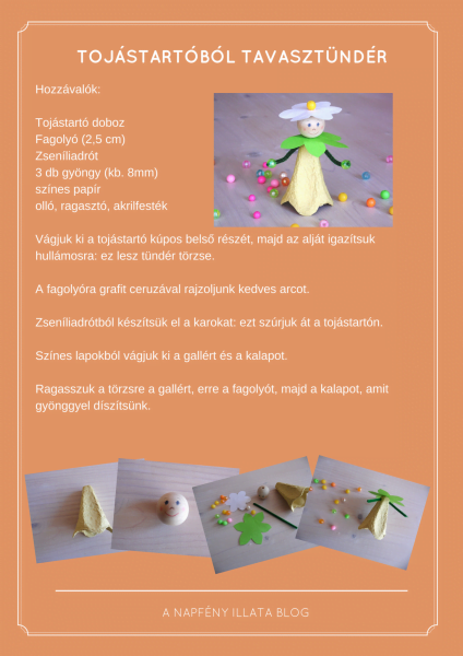 Rácz Anikó A napfény illata blog szerzője most egy fantasztikus tavasztündért varázsolt nekünk tojástartóból! Nem nehéz elkészíteni, nyugodtan nekiállhatunk a kicsikkel is!