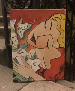 Bea: Több videos festésem is elkészült már, amit akár a kezdőknek is szeretettel ajánlok. Ezekben lépésről lépésre haladva készül el az alkotás, a video bármikor megállítható, akár több részletben is elkészíthető a kép. Futárral tudok küldeni minden kelléket a kiválasztott képhez – festéket, ecsetet, felrajzolt vásznat- , de magát csak az online festés videoját is megrendelheti bárki. Van, aki magát lepi meg vele, van, aki ajándékba adja, akár most Anyák napjára is rendeltek már több szettet, olyan édesanyának, aki örömmel fest. Egy biztos, a festés egy semmihez sem fogható kikapcsolódás, önkifejezés, út melyen keresztül megismerjük magunkat és elmerülünk az alkotás örömében.
