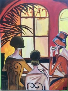 Jómagam is többször jártam már Nálad festésen, hol csoportos festésen, hol pedig egy egyéni képet vittem Neked és azt készítettük el közösen. Mindegyik alkalom oldott, kellemes hangulatú volt. Bea nagyon profin és kedvesen navigál a formák, a színek világában. Minden kép előre felrajzolt alapokkal indul, aztán szépen lassan fokozatosan bontakozik ki a tervezett kép. Mindenkié ugyanaz, de mégis más, más azért amilyen intenzitással használjuk az ecsetet, mennyire bátran használjuk a színeket…