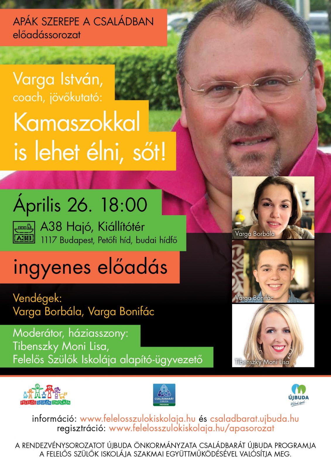 A Családbarát Újbuda Program és a Felelős Szülők Iskolája apasorozatának soron következő előadásának címe Kamaszokkal is lehet élni, sőt?!, előadója Varga István coach, digitális marketing szakember, jövőkutató és családapa. Az április 26.-án 18 órakor megrendezésre kerülő előadás kapcsán a Z-generációról, digitalizációról, tudatos apaságról és a lányának írt levelekből készült könyvéről kérdeztük az ismert szakembert.