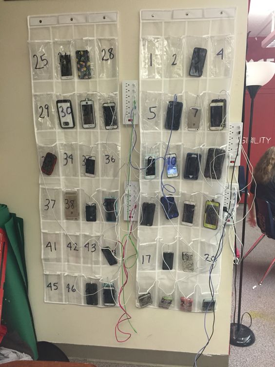 Tegyünk ki egy piros jelet az osztályterem ajtajára. Ekkor tudni fogják a diákok, hogy amikor bejönnek a terembe, kikapcsolt állapotban le kell tenniük a mobiljaikat pl. egy kosárba, vagy a tanári asztal sarkára vagy egy külön erre készített zsebekkel ellátott, falra függeszthető mobiltartóba, vagy egyszerűen mindenki elteszi az iskolatáskájába.