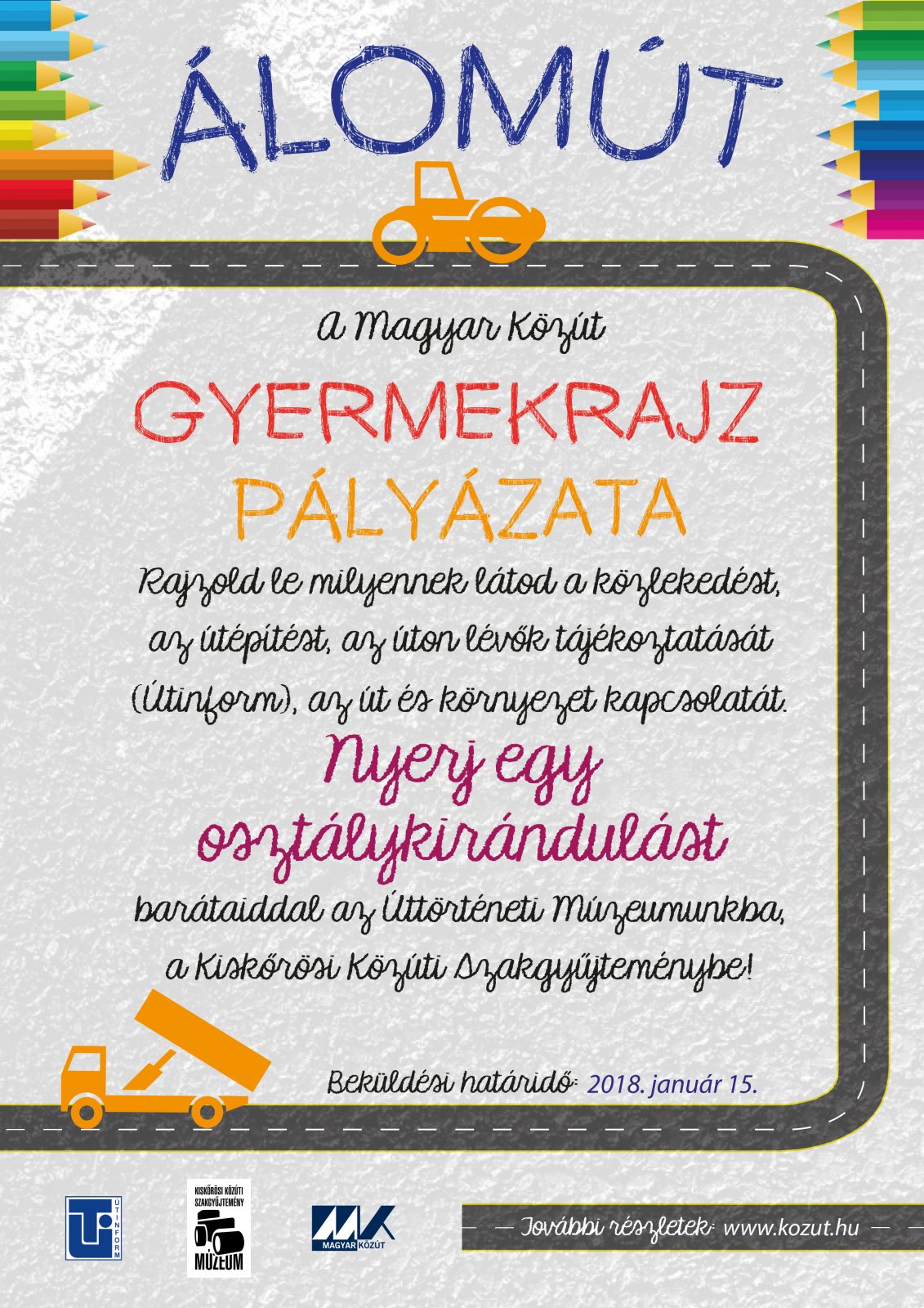 A Magyar Közút Nonprofit Zrt. immár ötödik alkalommal hirdette meg „Álomút” című rajzpályázatát általános iskolás gyermekek számára. A rajzpályázat fődíja ebben az évben is minden kategóriában egy-egy osztálykirándulás a Kiskőrösi Közúti Szakgyűjteménybe. Az elmúlt évek sikerei alapján a társaság ezúttal is olyan rajzokat vár az általános iskolásoktól, amelyek témája az úthoz kapcsolódik.