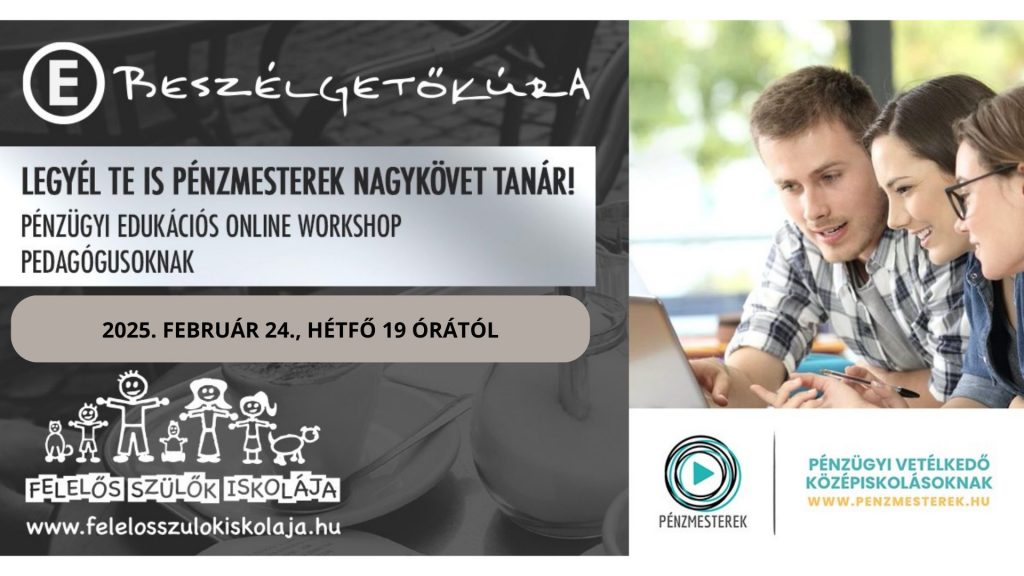 | Ha pedig szeretnétek egy nagyon jó lehetőségről értesülni a Felelős Szülők Iskolája Tanár Klub – Pedagógus Power keretein belül, akkor regisztráljatok ingyenes webináriumunkra a Pénzmesterek vetélkedőről, ahol megmutatunk egy olyan Tudástárat, ami ingyenesen használható, közel 100 oktatóvideót és cikket tartalmaz pénzügyi témákban, ráadásul egy több millió Ft összdíjazású vetélkedőn is részt vehetnek diákjaitok, Ti Pedig a munkátokért és a mozgósításért cserébe anyagi és eszmei díjazásban (utalványok, pénzbeli juttatás) is részesülhettek. |