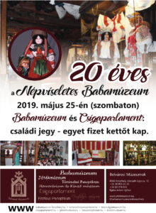 Május 25-én ünnepli 20. születésnapját a Népviseletes Babamúzeum és a Csigaparlament: családi jegy – egyet fizet kettőt kap ezen a napon. Mindezek mellett ajándékkuponokat és utalványokat adnak programjaikon a jegy mellé.